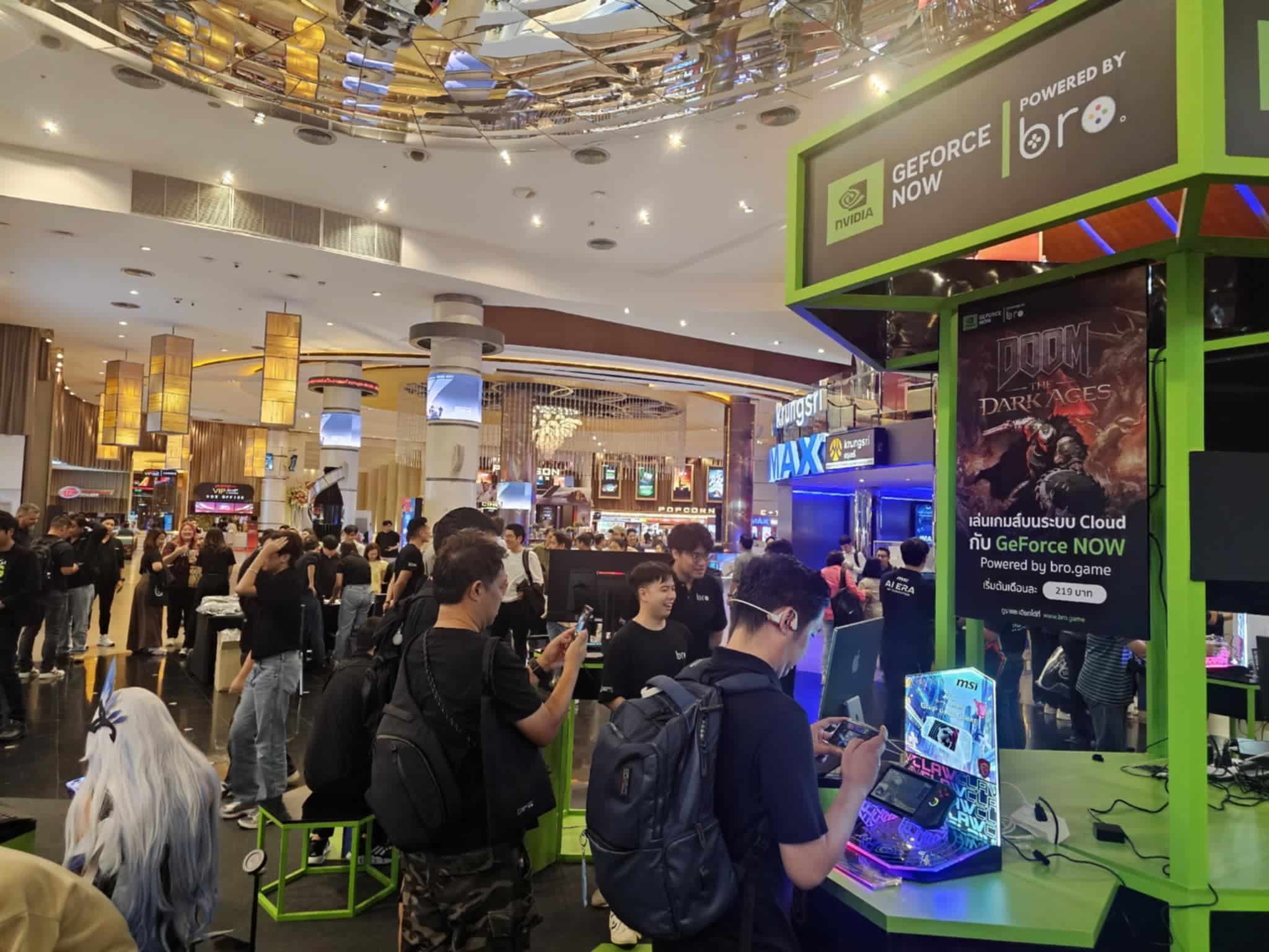 งานเปิดตัวสุดอลังการเพื่อต้อนรับ GeForce NOW สู่ประเทศไทยอย่างเป็นทางการ ถูกจัดขึ้นอย่างยิ่งใหญ่ ณ สยามภาวลัย รอยัล แกรนด์เธียเตอร์ ชั้น 6 สยามพารากอน ภายในงานจัดเต็มทั้งโซนทดลองเล่นเกมฮิตใน Experience Zone ให้ทุกคนได้ทดลองใช้บริการผ่านอุปกรณ์ชนิดต่างๆ มากมาย รวมไปถึงการแสดงสุดพิเศษจากศิลปิน gena desouza และการเปิดเผยรายละเอียดของบริการกับพูดคุยนั่งแลกเปลี่ยนความคิดเห็นเกี่ยวกับการนำบริการ GeForce NOW มาเปิดในไทย