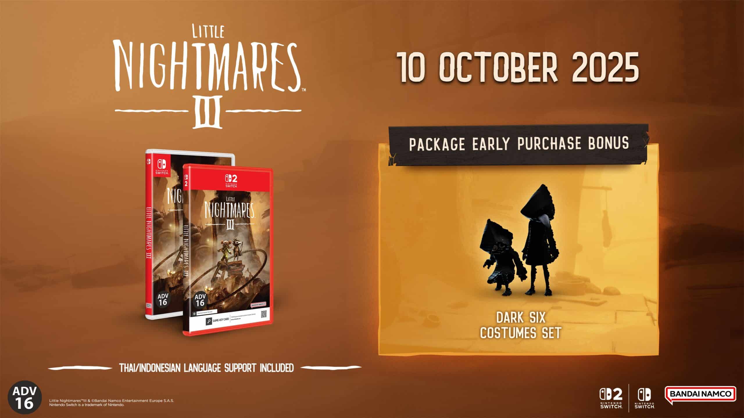 Bandai Namco Entertainment Asia ออกมาประกาศว่าเกม Little Nightmares III หรือชื่อไทย “สิ่งเล็กๆ ในห้วงฝันร้าย III” ผลงานพัฒนาโดย Supermassive Games จะวางจำหน่ายในวันศุกร์ที่ 10 ตุลาคม 2025 บน PlayStation 5, PlayStation 4, Nintendo Switch 2, Nintendo Switch , Xbox Series X|S, Xbox One และ PC ผ่านทาง Steam รวมถึงเปิดให้สั่งซื้อล่วงหน้าแล้วตอนนี้ (ของเวอร์ชั่น Switch จะเปิดให้สั่งจองในภายหลัง) โดยตัวเกมยืนยันแล้วว่ามีการรองรับภาษาไทยด้วย