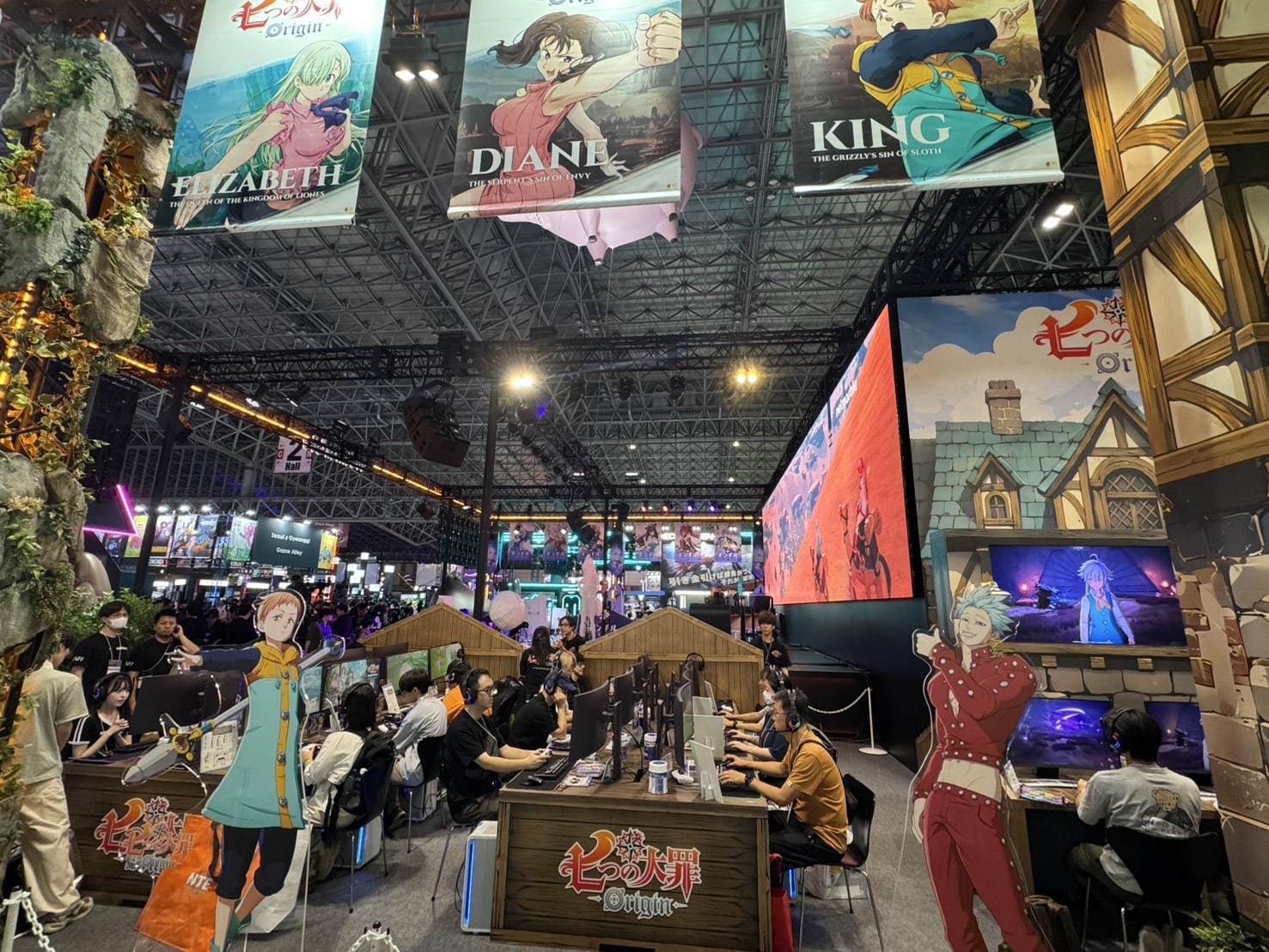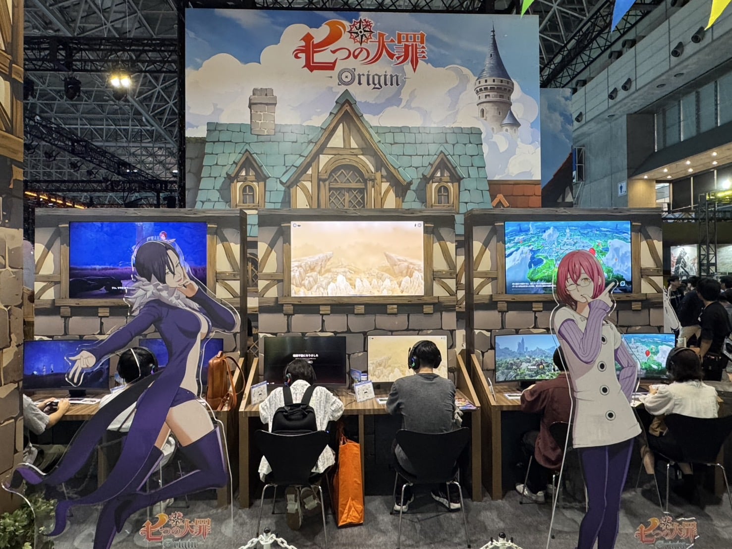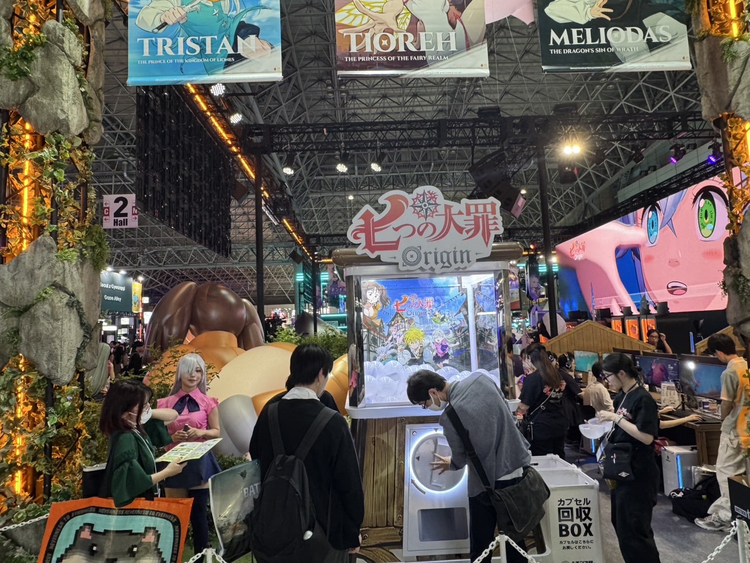 บูธ Netmarble ในงาน Tokyo Game Show 2025 โดดเด่นด้วยเกมแอ็กชัน RPG แบบ Open World ตัวใหม่อย่าง The Seven Deadly Sins: Origin ที่มีรูปปั้นตัวละครหลักเด่นสง่าอยู่หน้าบูธและมีสาวคอสเพลย์แต่งตัวเป็น Elizabeth คอยยืนให้ถ่ายรูปแจกของรางวัลรวมถึงเชิญชวนให้แฟนๆ ได้ไปต่อแถวทดลองเล่น นอกจากนี้ยังมีอีกเกมใหม่ที่ได้รับความนิยมไม่แพ้กันก็คือ Mongil Star Drive ซึ่งมีการนำตัวเกมมาให้ทดลองเล่นด้วยเช่นกัน รวมถึงเจ้าเหมียวสีดำตาแบ๋วที่มาพร้อมตุ๊กตาน่ารักๆ เห็นแล้วอยากให้มีแจกในไทยบ้าง โดยรวมบรรยากาศบูธเต็มไปด้วยกิจกรรมให้ผู้เข้าร่วมงานได้สัมผัสประสบการณ์เกมใหม่ๆ และรับของที่ระลึกติดมือกลับบ้านกันเพียบ