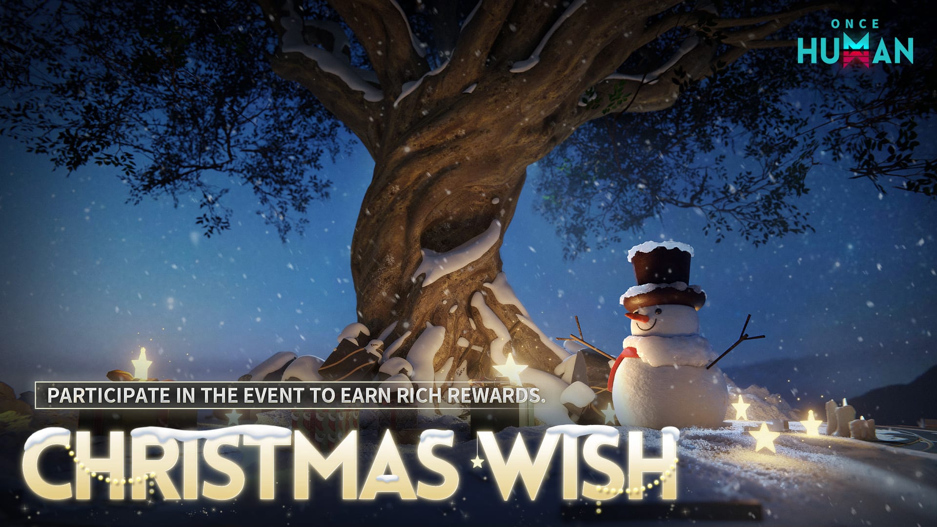 ตั้งแต่วันที่ 10 ธันวาคม เป็นต้นไป Once Human จะร่วมเฉลิมฉลองเทศกาลวันหยุดด้วย เกาะพิเศษธีมคริสต์มาส ซึ่งบนเกาะแห่งนี้จะมีต้นไม้ขนาดใหญ่ที่เปลี่ยนแปลงไปตามการมีส่วนร่วมของผู้เล่น เมื่อเกาะปรากฏขึ้นในช่วงแรก ต้นไม้จะเปิดรับของขวัญจากผู้เล่น และการบริจาคเหล่านี้จะช่วยแปรเปลี่ยนมันให้กลายเป็น ต้นคริสต์มาสสุดยิ่งใหญ่ พร้อมมอบ ตั๋วเข้าเล่นมินิเกม Whack-A-Mole ธีมเทศกาล ซึ่งมีรางวัลพิเศษเฉพาะตัวให้ปลดล็อก