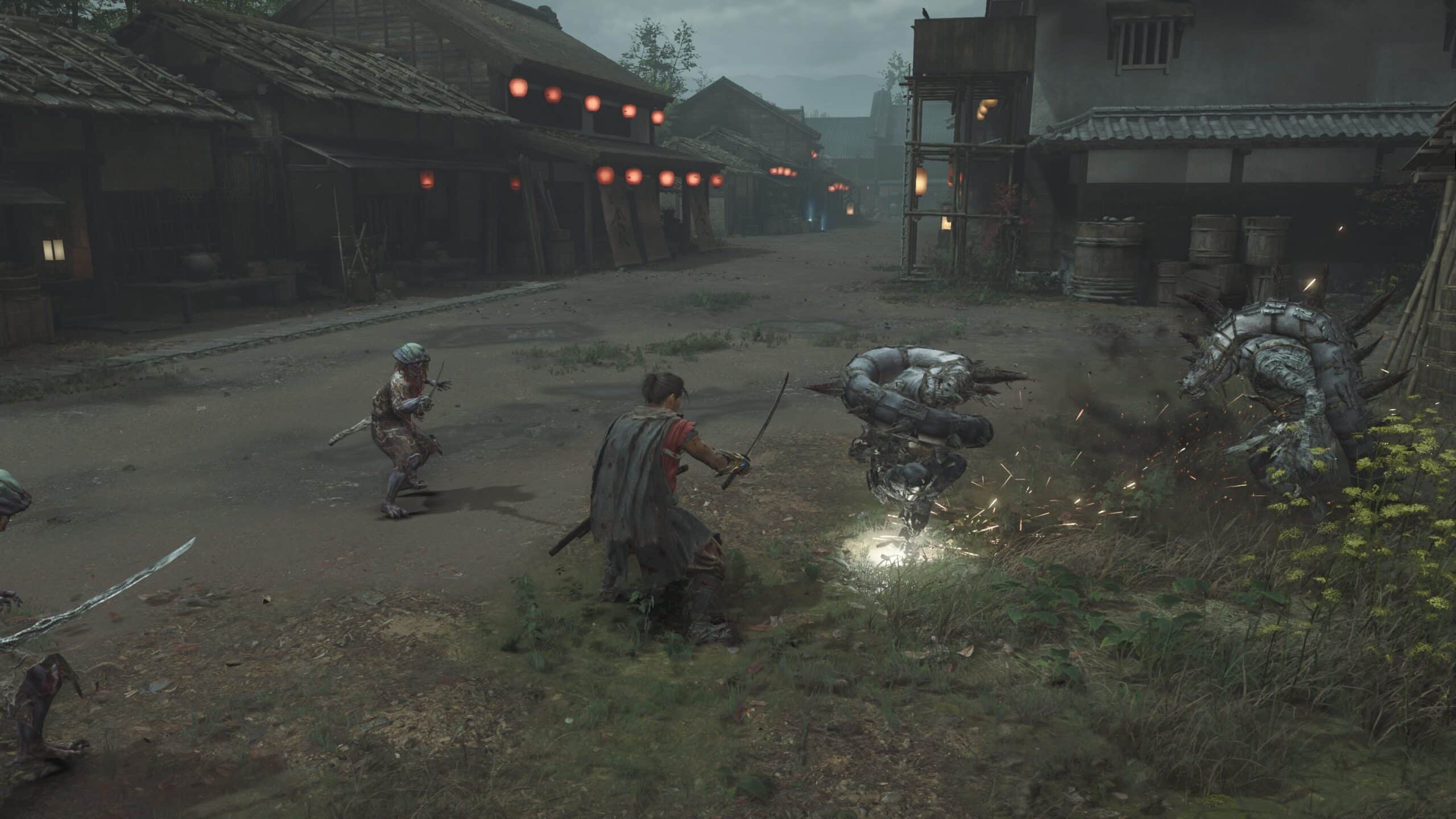 ฟุตเทจล่าสุดยังเผยให้เห็นการเล่นเกมที่ Musashi ต่อสู้กับศัตรูตามท้องถนนของเกียวโต รวมถึง Togemaru Genma รูปงูมีหนามตามกระดูกสันหลัง พุ่งเข้าปะทะด้วยความเร็วสูงเพื่อทำลายเป้าหมายอย่างรุนแรง แม้ Musashi จะลังเลที่จะใช้พลังของ Oni Gauntlet แต่เขาจำเป็นต้องใช้มันเพื่อเอาชนะศัตรูทรงพลังเหล่านี้