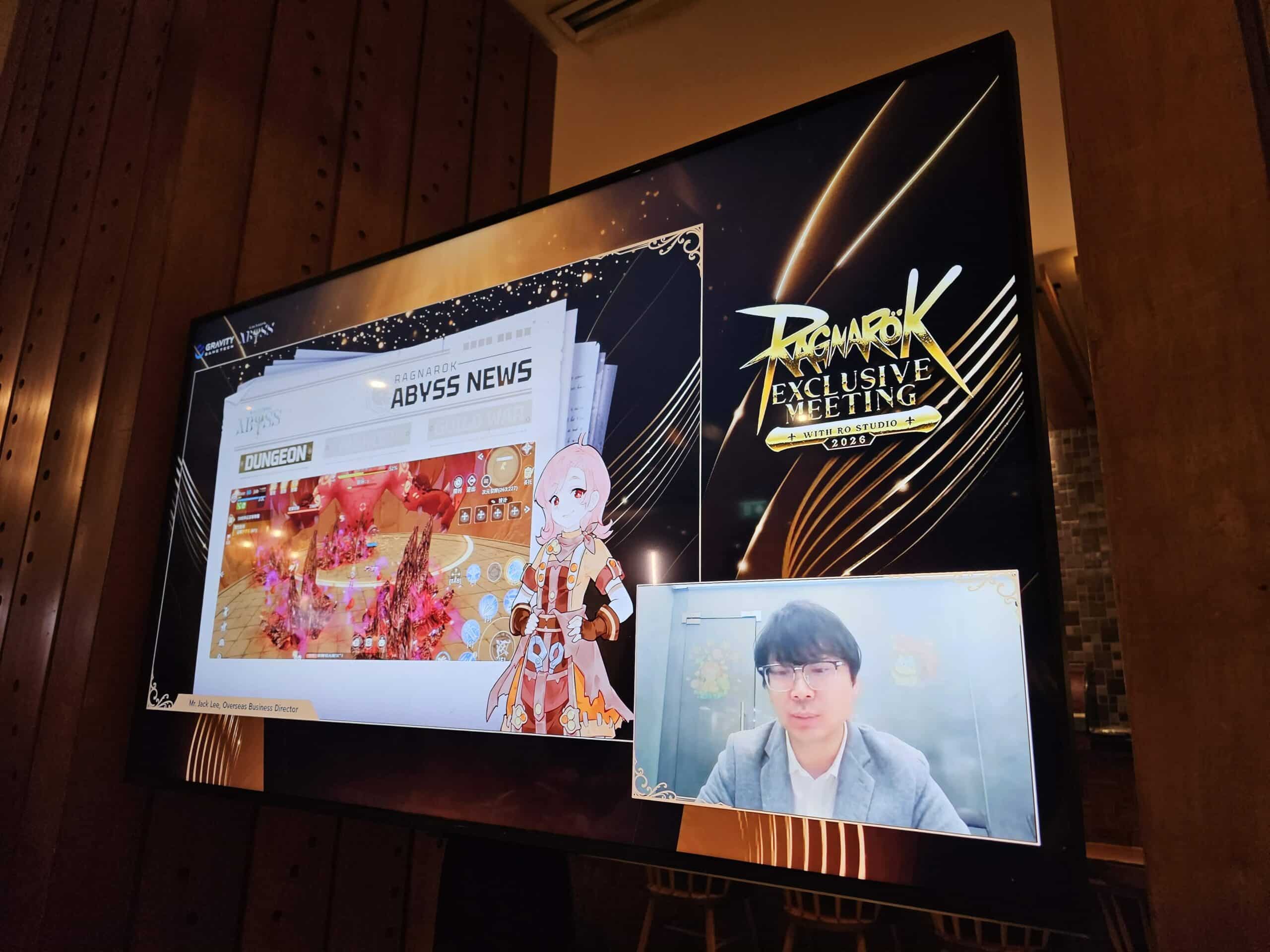 ทางด้านของ Ragnarok Abyss ที่กำลังพัฒนาอยู่นั้นทางผู้พัฒนาออกมาโชว์ดันเจี้ยนใหม่ กับแง้มถึงระบบใหม่ที่กำลังทำอยู่อย่าง Manor ซึ่งเป็นพื้นที่ของตัวเองใช้ทำกิจกรรมต่างๆ เช่น การทำอาหาร ปรุงยา คราฟต์เฟอร์นิเจอร์ และผลิตสีย้อม เป็นต้น และสุดท้ายกับโชว์ในส่วนของสงครามกิลด์พื้นที่เมืองใหญ่ทั้ง 5 เมืองให้เห็น พร้อมกับขอบคุณผู้เล่นที่เฝ้ารอเกมนี้อยู่ โดยทีมงานพร้อมนำข้อเสนอแนะมาจากการทดสอบในครั้งต่างๆ ของผู้เล่นมาพัฒนาให้เกมออกมาดีที่สุด และจะมีการอัปเดตข่าวสารให้ทราบกันเป็นระยะ