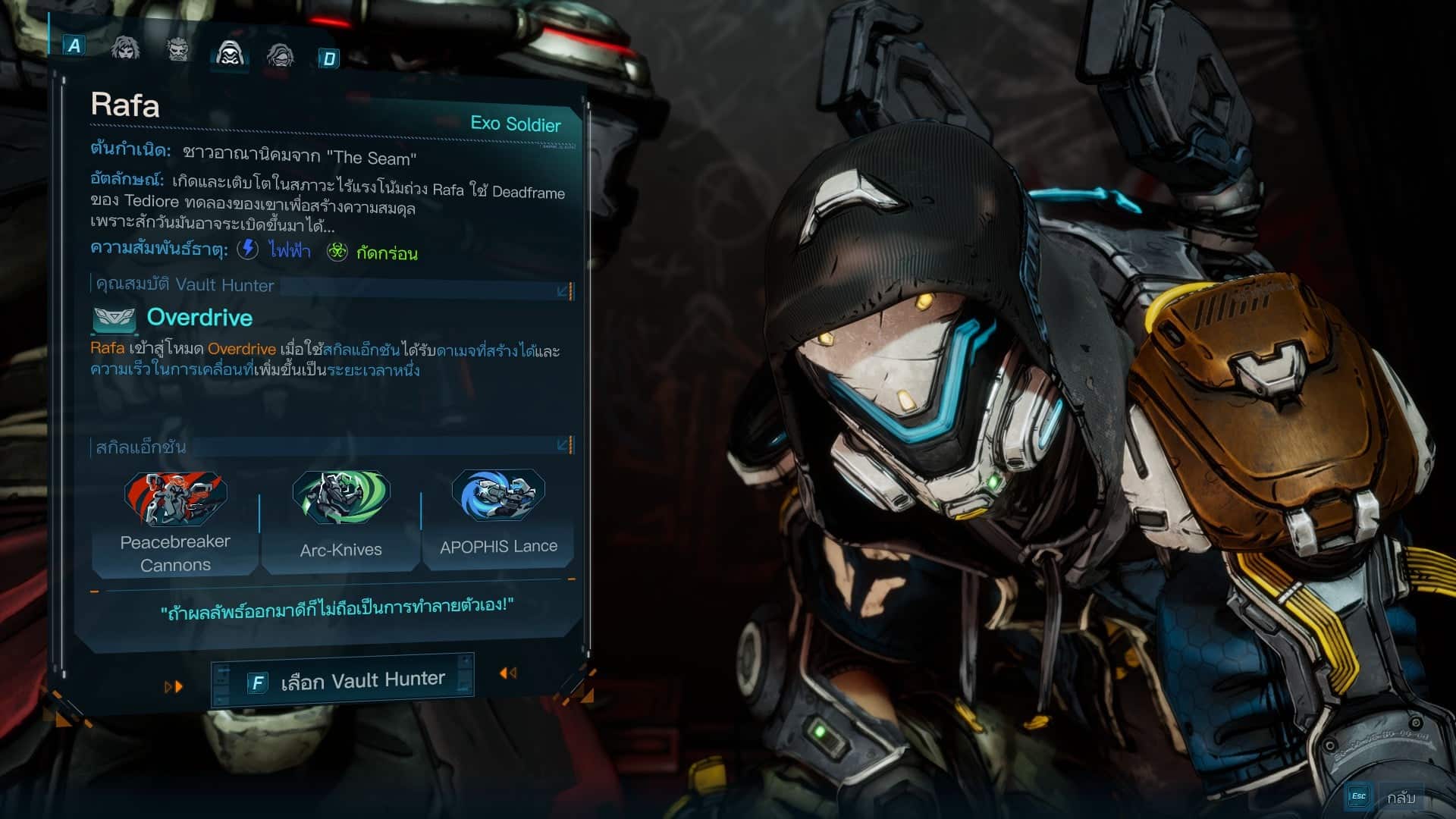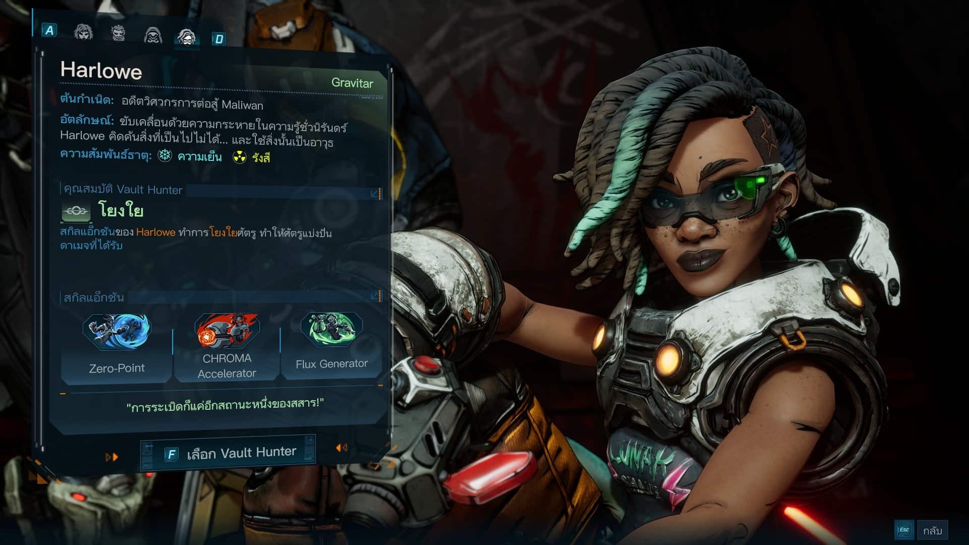 อดีตนักวิทยาศาสตร์จาก Maliwan เชี่ยวชาญ gadget / เทคโนโลยีธาตุ (elemental effects) เน้นควบคุมสนามรบ + สนับสนุนทีม