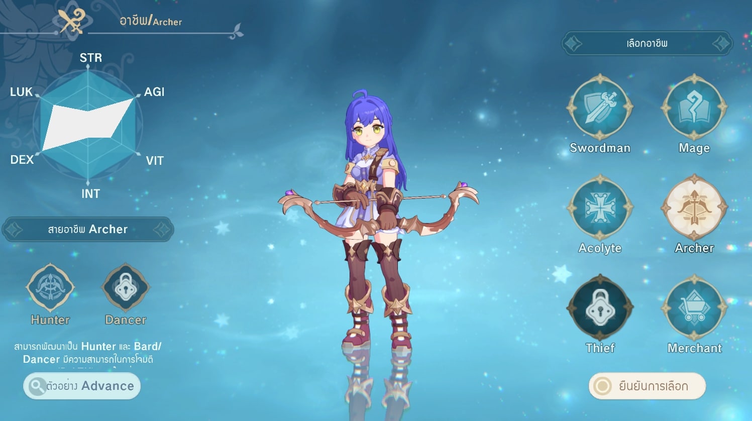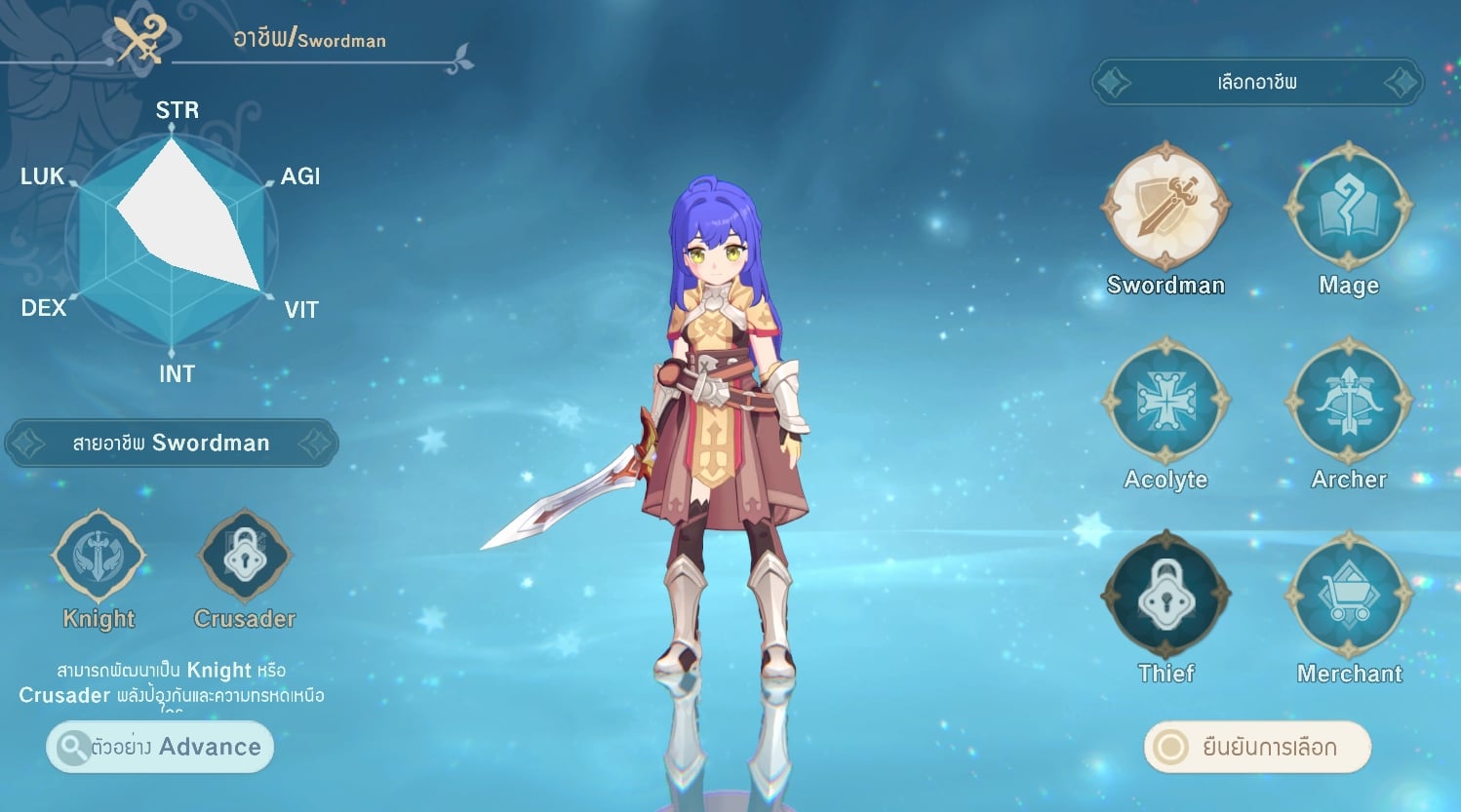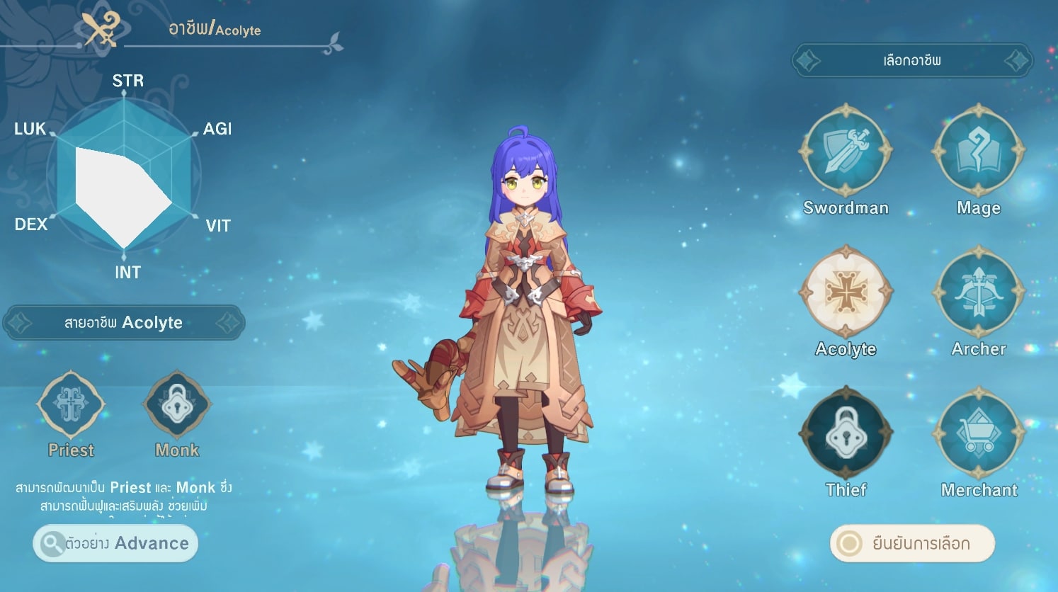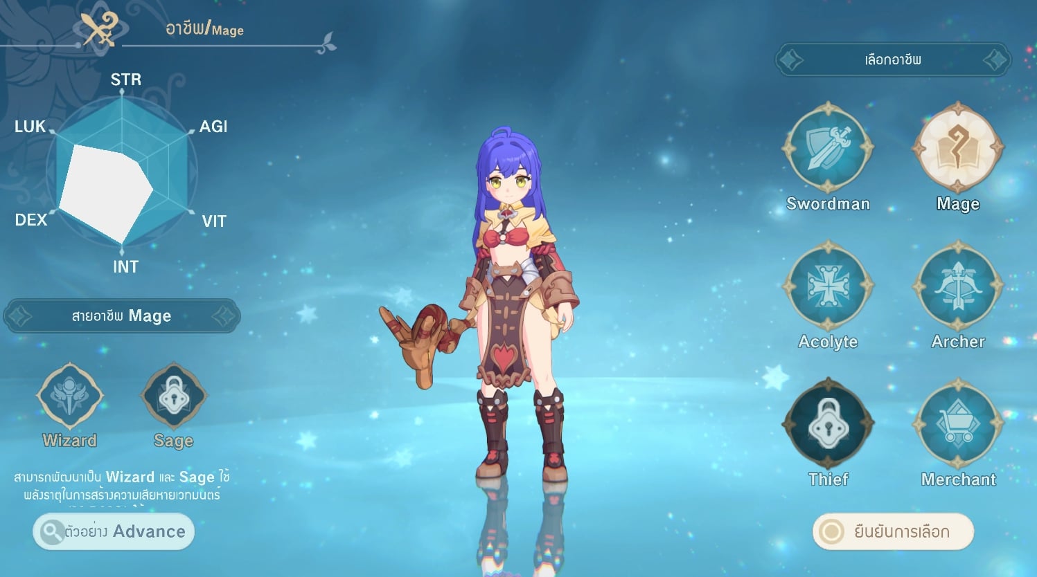 ทางด้านของเกมเพลย์นั้นเริ่มต้นจะให้เราสร้างตัวละครโดยเลือกเพศชายหรือหญิงได้ โดยจะเป็นนอวิชก่อนหลังจากนั้นก็จะมีให้เลือกคลาสอาชีพในการเล่นได้ โดยในช่วง CBT ที่เห็นมีให้ลองก็มีทั้ง Sword, Mage, Acolyte, Archer, Merchant และที่ล็อกอยู่คือ Thiel ซึ่งแต่ละคลาสอาชีพก็จะมีสกิลกับอาวุธในการต่อสู้ที่แตกต่างกันไป โดยสามารถเปลี่ยนคลาสแยกออกไปตามสายอีกเหมือนๆ กับภาคคลาสิก โดยตัวละครเราสามารถที่จะอัพค่าสเตตัส ลงแต้มสกิลได้ มีทั้งแบบอัปเองหรือเลือกที่ตัวเกมแนะนำให้ก็ได้ ในเรื่องสกิลนั้นแอบเห็นว่ามีสกิลใหม่ๆ ที่ไม่เคยเห็นด้วย