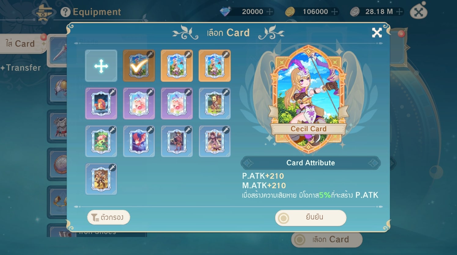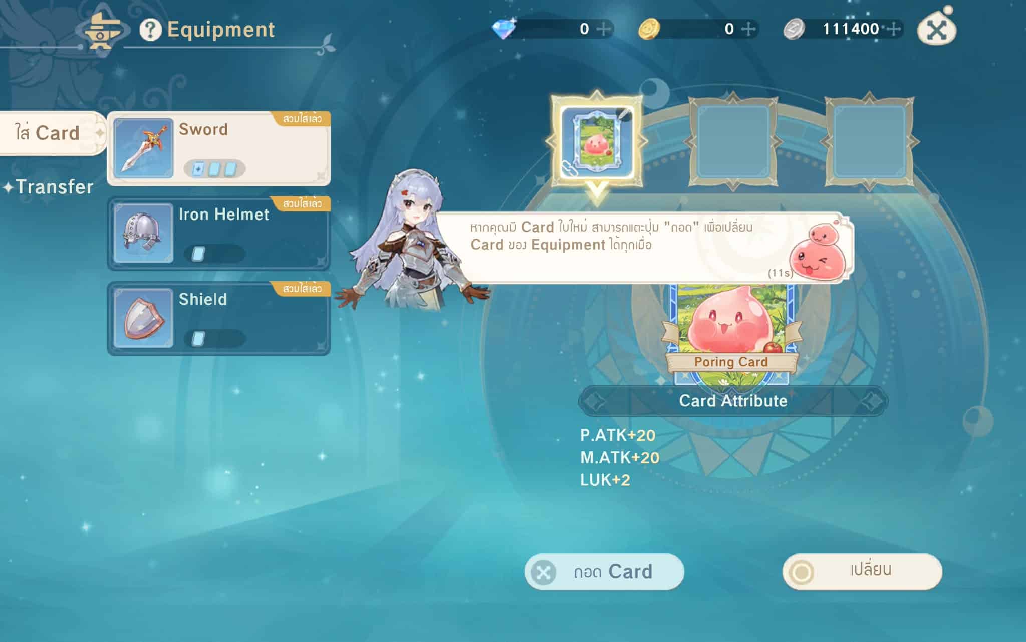 ตัวละครมีการสวมใส่อาวุธอุปกรณ์เครื่องห้องกันแยกเป็นส่วนๆ คล้ายกับภาคคลาสสิกและยังมีระบบการ์ดมาให้ใส่เพิ่มความสามารถด้วย แต่พวกค่าสถานะหรือความสามารถนั้นมีหลายอย่างที่ไม่เหมือนกันภาคคลาสสิกอยู่พอสมควร พวกไอเทมสวมใส่นี้มีในเรื่องของการตีบวก การหลอม หรือการสุ่มสเตตัสด้วย