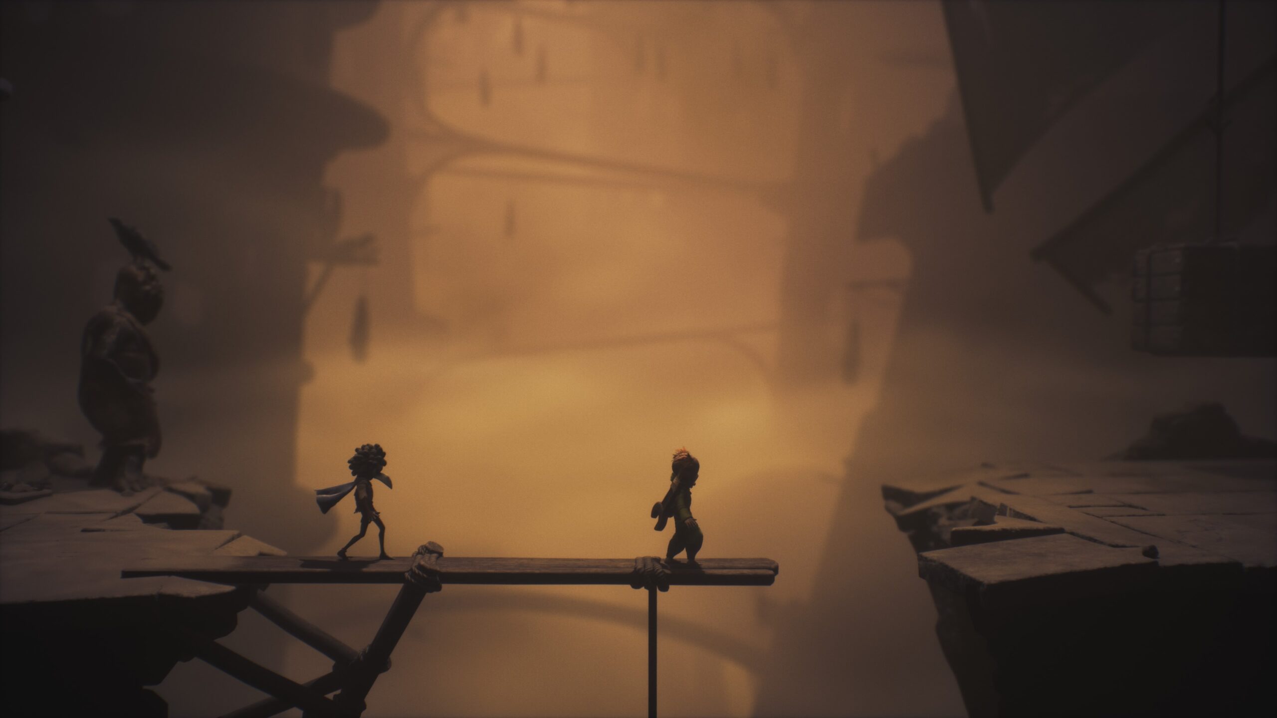 เรื่องราวของเกมในภาคนี้ Little Nightmares III พาผู้เล่นเข้าสู่โลกใหม่ชื่อว่า The Spiral ดินแดนที่เต็มไปด้วยเศษซากของอารยธรรมในอดีต ที่ทั้งบิดเบี้ยวและน่ากลัวเกินกว่าจะเข้าใจ เราได้รับบทเป็น Low และ Alone เด็กสองคนที่ติดอยู่ในวงจรแห่งฝันร้าย พยายามหาทางหนีออกจากโลกใบนี้โดยการเดินทางผ่านเมืองต่างๆ ที่ถูกกลืนกินด้วยความบิดเบือนและสิ้นหวัง สิ่งที่ทำให้ภาคนี้โดดเด่นคือการเล่าเรื่องแบบคู่ขนานและสัมพันธ์กันระหว่างสองตัวละคร ทั้งสองมีบุคลิกและมุมมองที่ต่างกัน แต่ต้องพึ่งพากันเพื่อเอาชีวิตรอด การสื่อสารผ่านภาษากาย เสียงลมหายใจ หรือการหยิบมือกันหนีจากภัยมืด สร้างอารมณ์ร่วมที่มากกว่าแค่เกมสยอง แต่มันคือเรื่องราวของความหวังท่ามกลางฝันร้าย ตัวเกมยังไม่บอกว่าทั้งคู่เป็นใคร แต่จะคอยบอกเล่าผ่านเรื่องราวไปเรื่อย ๆ ให้เราได้เห็นผ่านปริศนาต่าง ๆ และการเดินทางของทั้งคู่ไปจนสุดปลายทาง