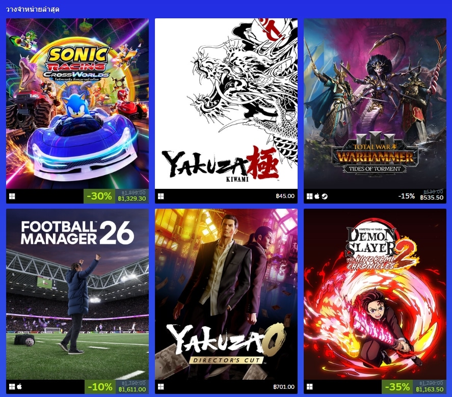 หนึ่งในไฮไลต์คือ Football Manager 26 ภาคที่มอบประสบการณ์สมจริงที่สุดของซีรีส์ ซึ่งวางจำหน่ายในราคาลด 10% นอกจากนี้ยังมี Virtua Fighter 5 R.E.V.O. World Stage ที่รองรับระบบ Crossplay และ Rollback Netcode ให้เลือกซื้อในราคาลด 30%