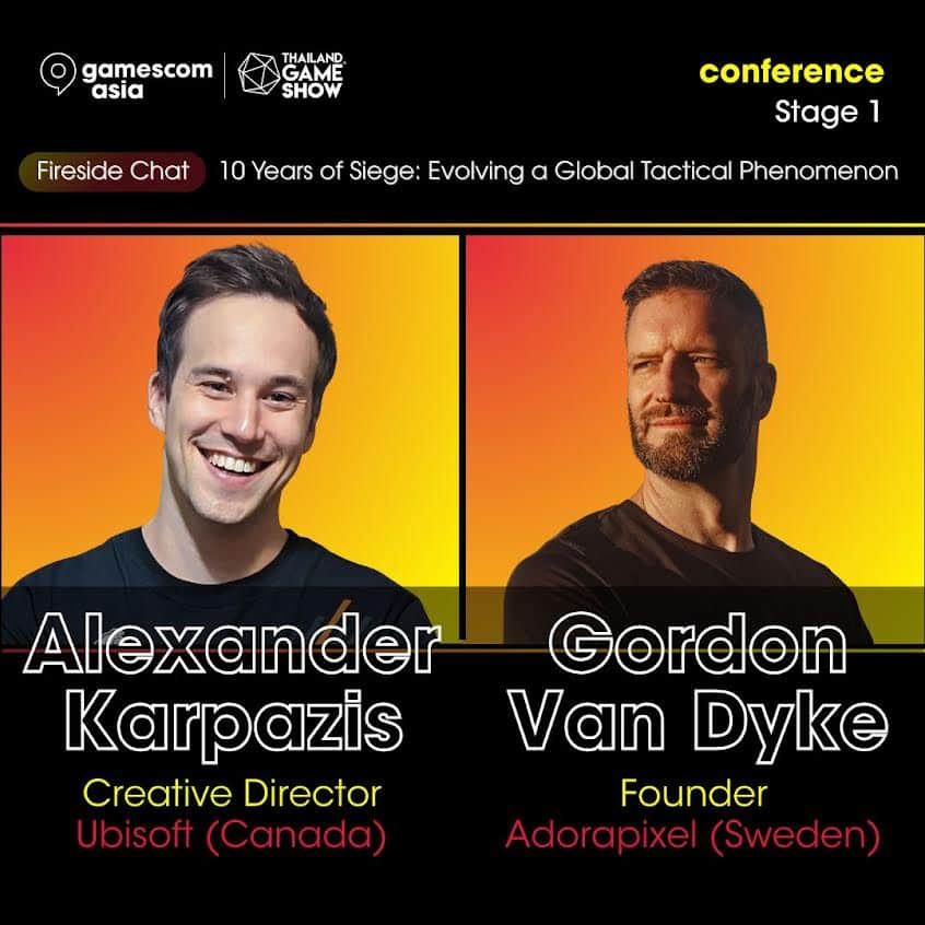 เพื่อฉลองครบรอบ 10 ปีของ Siege ทาง Ubisoft จะจัดกิจกรรมพูดคุยอย่างเป็นกันเองในวันพฤหัสบดีที่ 16 ตุลาคม เวลา 11:25 น. : “10 Years of Siege: Evolving a Global Tactical Phenomenon” พบกับ Alexander Karpazis ผู้อำนวยการฝ่ายสร้างสรรค์ของ Tom Clancy’s Rainbow Six Siege ที่จะมาย้อนรำลึกถึง Siege ตลอด 10 ปีที่ผ่านมา ตั้งแต่ยุคแรกเริ่มจนถึงอัปเดต Siege X ล่าสุด ในการจับเข่าคุยในครั้งนี้ Karpazis จะมาแบ่งปันว่าทีมงานได้รักษาความสดใหม่ของเกมไว้ได้อย่างไรตลอดการพัฒนาอย่างต่อเนื่อง การมีส่วนร่วมของชุมชนที่ลึกซึ้งได้กำหนดทิศทางของเกมอย่างไร และ Siege ได้ปรับตัวอย่างไรเพื่อให้เข้าถึงผู้เล่นที่หลากหลายทั่วโลก รวมถึงความพยายามในการปรับเนื้อหาให้เข้ากับภูมิภาคเอเชียแปซิฟิกและทั่วโลก ไม่ว่าคุณจะเป็นผู้เล่นที่เล่น Siege มานานหรือเพิ่งรู้จัก Siege เป็นครั้งแรก เซสชันนี้จะพาคุณไปสัมผัสเบื้องหลังว่าเกมยิงเชิงกลยุทธ์นี้กลายมาเป็นเกมหลักระดับโลกได้อย่างไรตลอดหลายปีที่ผ่านมา