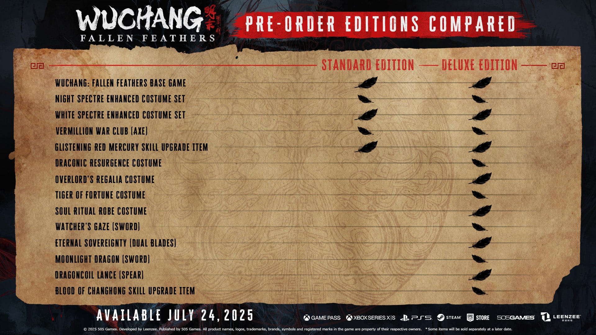 WUCHANG: Fallen Feathers ยังมีวางจำหน่ายในรูปแบบ Deluxe Edition ซึ่งจะประกอบด้วย: