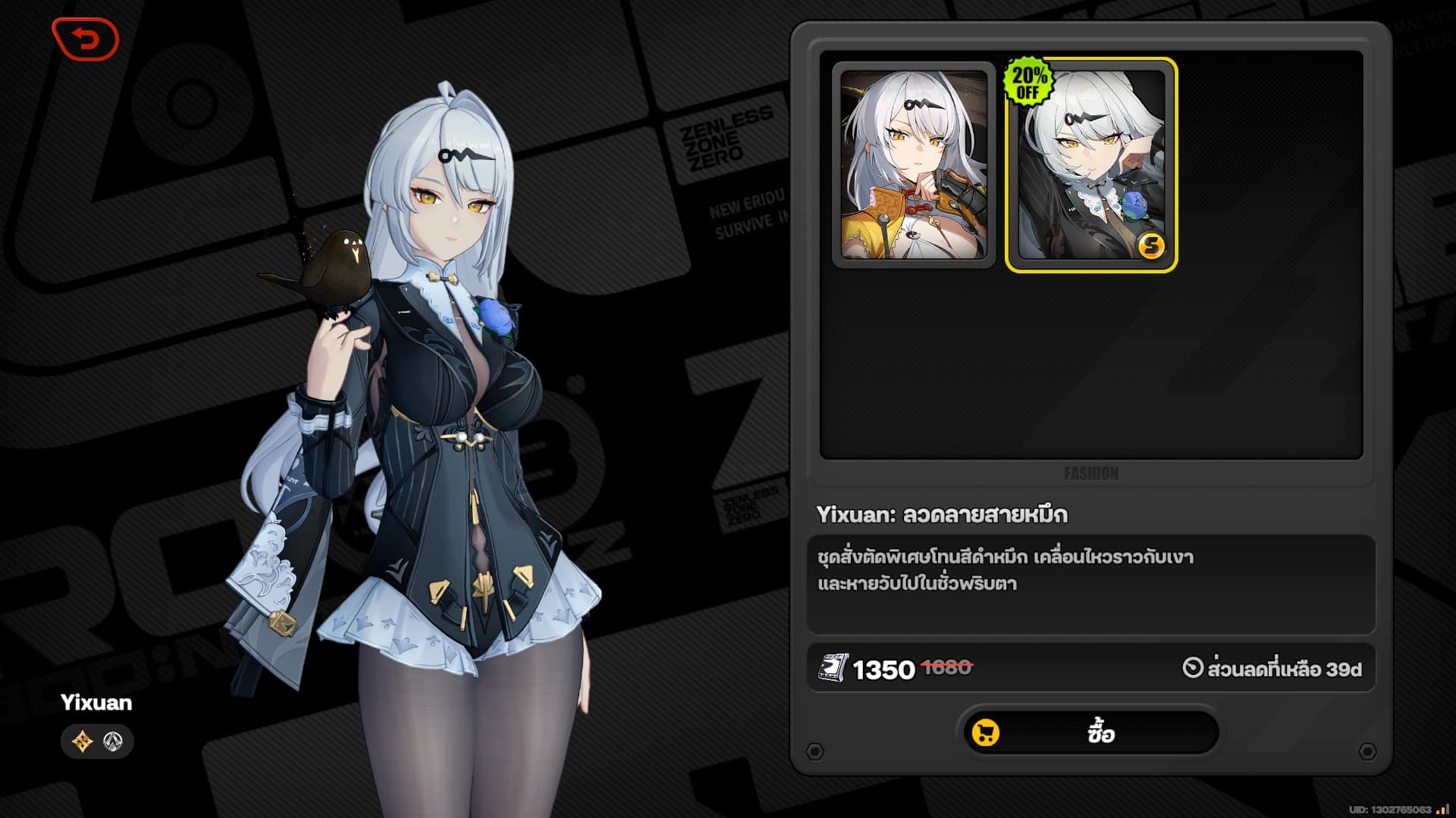 เป็น Agent แรงก์ S [Yixuan (ตัดสะบั้น – หมึกอนธการ)] โดยที่ Yixuan มีธาตุพิเศษ [หมึกอนธการ] และเป็น Agent ประเภทสร้างความเสียหายที่สามารถสร้าง Sheer DMG โดยมองข้ามการป้องกันของศัตรู เธอสามารถใช้พลังงานพิเศษ [Adrenaline] เพื่อรับ [Technique Point] ได้ โดยเมื่อมี [Technique Point] เพียงพอ Yixuan จะสามารถใช้ [Technique Point] ทั้งหมดเพื่อใช้สกิลอัลติเมทพิเศษ 1 ครั้ง และจะได้รับจำนวนครั้งการใช้ [Auric Array] 1 ครั้ง