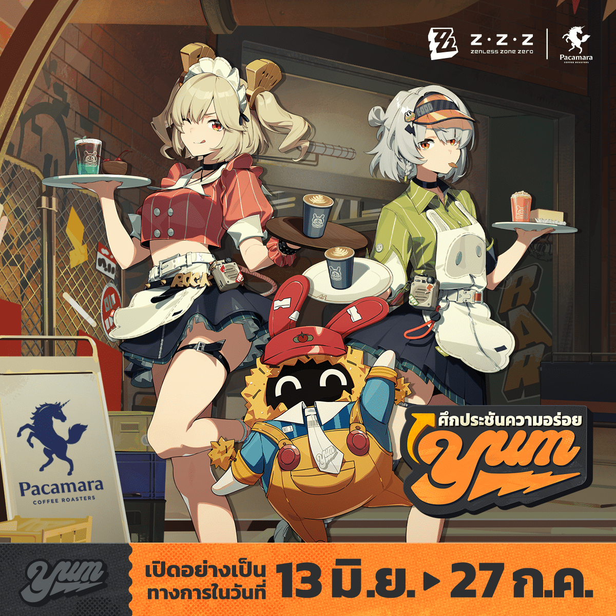 Zenless Zone Zero × Pacamara Coffee Roasters เตรียมมอบกิจกรรมคอลแลปส์พิเศษ “ศึกประชันความอร่อย Yum” มีเป้าหมายเพื่อเชื่อมโยงจักรวาลในเกมเข้ากับประสบการณ์จริงในชีวิตประจำวัน พร้อมเชิญชวนเหล่า Proxy มาลิ้มลองเมนูอาหารและเครื่องดื่มที่ได้แรงบันดาลใจจากเมือง New Eridu นอกจากนี้ยังมีการตกแต่งร้าน แพ็กเกจสินค้า และคอมโบพิเศษที่นำเสนอเหล่าเอเจนต์ยอดนิยมอย่าง Anby, Burnice และเอเจนต์ใหม่ในเวอร์ชัน 2.0 อย่าง Yixuan ซึ่งจะต้องถูกใจแฟน ๆ อย่างแน่นอน