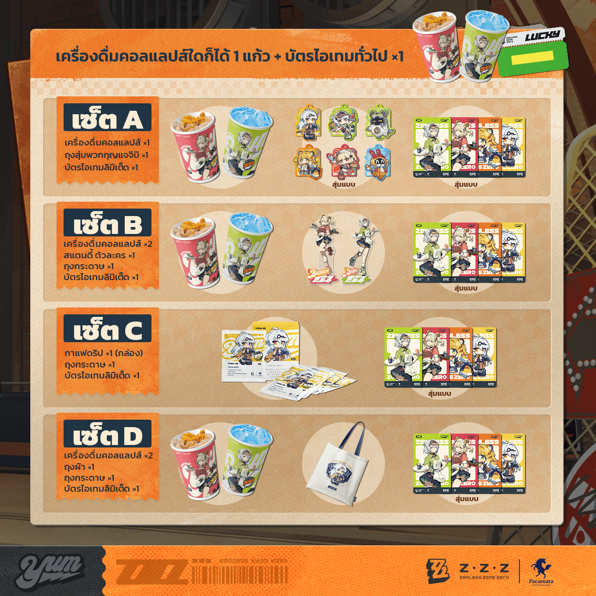 ลูกค้าที่ซื้อชุดคอมโบ Collaboration จะได้รับบัตรขูดเพื่อลุ้นรับไอเทมในเกม เช่น อวาตาร์พิเศษ, โปรไฟล์การ์ด และสินค้าลิมิเต็ดเอดิชันสุดพิเศษ สำหรับเครื่องดื่มนั้นจะมีการแบ่งออกเป็น Set A, B, C, D ให้ได้เลือกซื้อ